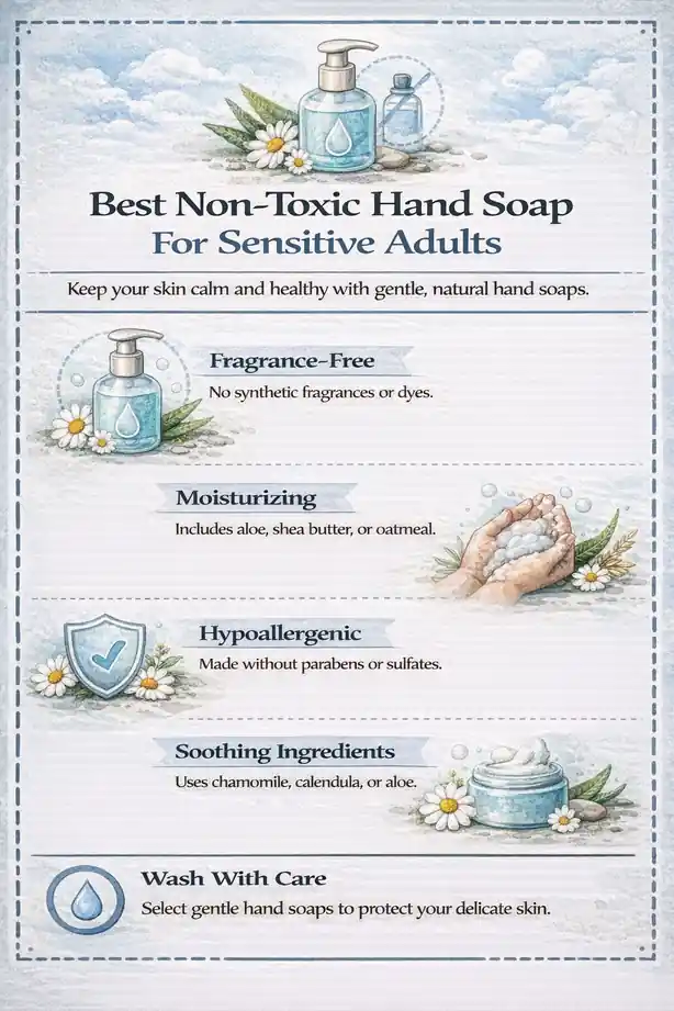 Through real-world use and formulation review, certain ingredients consistently cause problems for sensitive hands. Common culprits include sulfates (like SLS and SLES), synthetic fragrance blends, triclosan, and unnecessary preservatives. The best non-toxic hand soaps keep ingredient lists short and purposeful.